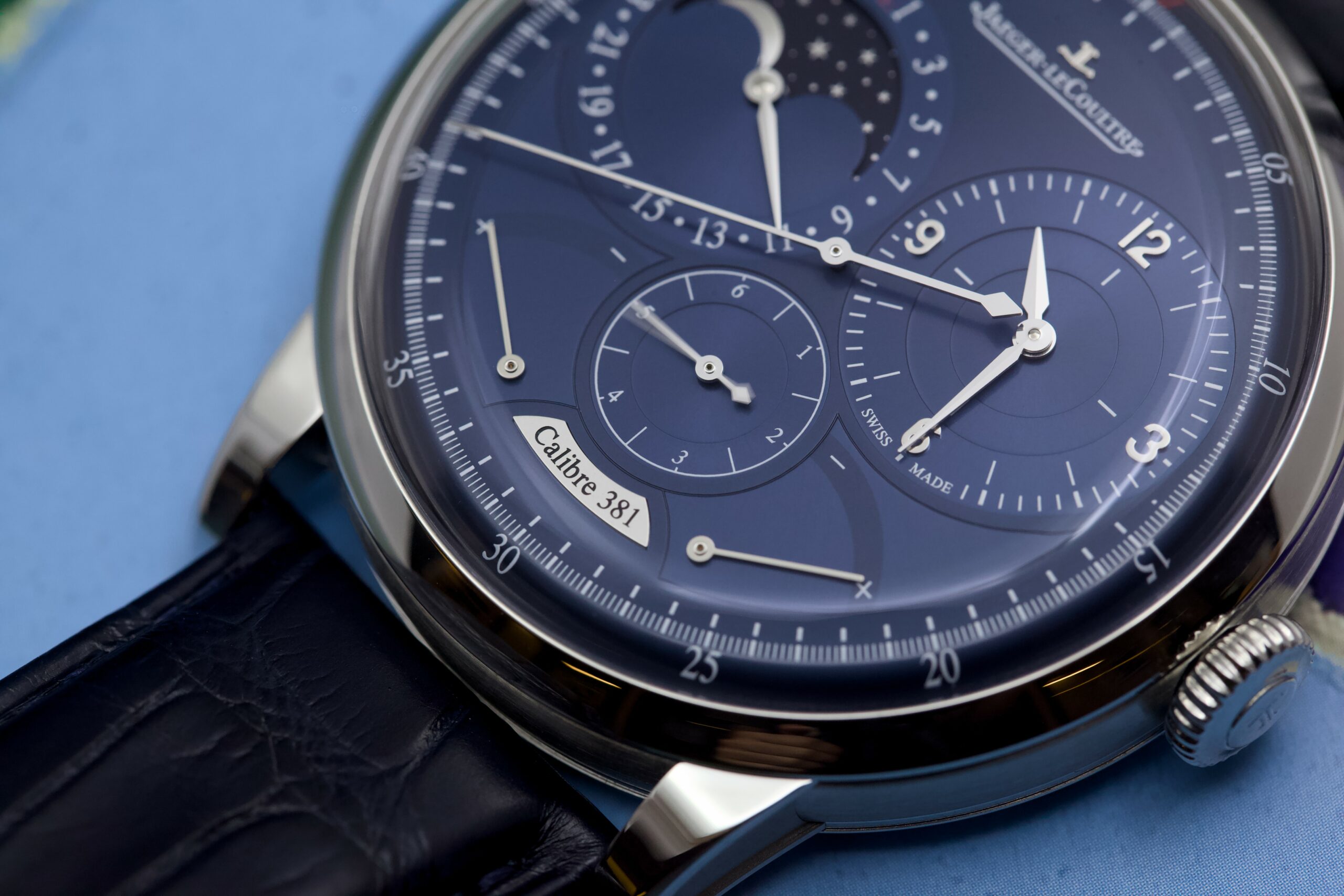 Visible via the transparent case back is the calibre 381AA, a reworked movement from the original 381 with the quality finishing details one would expect from the maison, including a sunray Côtes de Genève, radiating from the escapement, the chamfering on the bridges and plates, and the blue screws. The two mainspring barrels are also marked accordingly, “minutes / heures” and “régulateur”, denoting that one barrel is responsible purely for timekeeping, and the centre seconds since it is part of the first gear trains, while the other one is responsible for all the displays in the front. Including the hours, minutes, centre seconds, date, moon phase, and, of course, the lively foudroyante skipping at all times.
